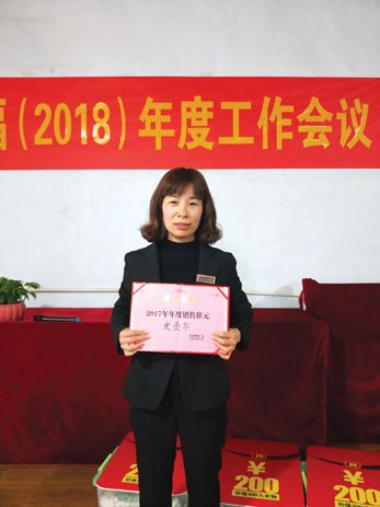 百货部年度销售状元:史爱华 该员工现在为公司3星级员工,在工作中积极向上、乐于助人、服从公司安排、责任心强,深得商户与同事好评。在17年工作中4月、8月、9月、11月、12月,5个月被评为销售状元,在全年销售专柜排名当中位居第一。