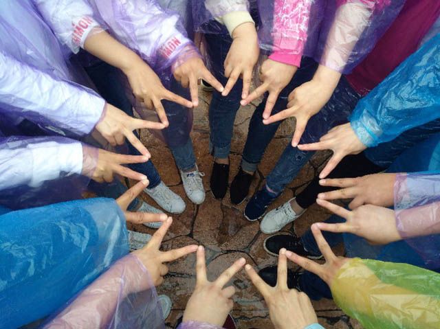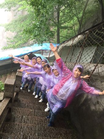 上山的途中依旧下雨,我们全然不顾雨水把浑身都淋湿,开心ing......