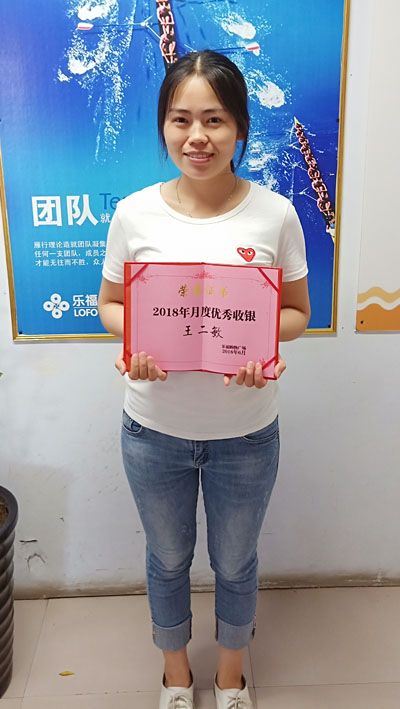 优秀收银:王二敏 该员工头脑灵活,接受能力强。作为一名信息员,能合理安排时间完成信息部和前台收银的工作,望各位同事以她为榜样,都能把自己的工作做到最好!她就是5月份优秀收银员—王二敏